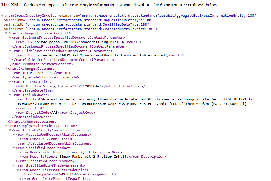 Beispiel XML-Code einer E-Rechnung
