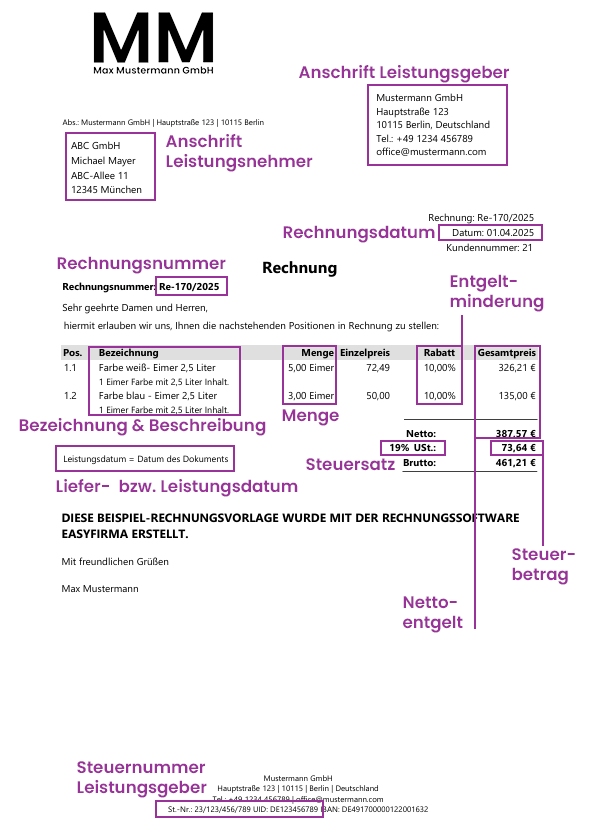 Folgende Pflichtangaben müssen auf einer Rechnung enthalten sein: